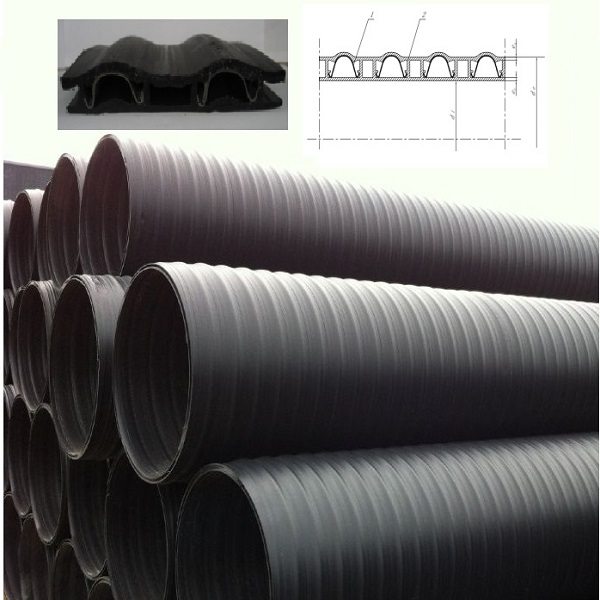 遂寧中空壁塑鋼纏繞聚乙烯管道是以中空聚乙烯(PE)板帶為基體,用“Ω”形狀的鋼骨架為主要支撐結構,生產管道鋼骨架原材料為鍍鋅鋼帶,采用纏繞成型工藝,經加工制成內壁平直光滑,外壁呈波紋狀的中空壁塑鋼纏繞聚乙烯管道(簡稱:“HWPSP”管道)