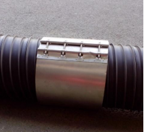 (4)將橡膠套套入管材端部,套入長度為橡膠套的一半,然后將另一半翻折回來套在同一管端。